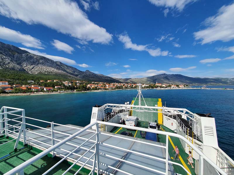 Nakon 3 sata vožnje trajektom stižemo u Vela Luku na Korčuli i poslije kratke cuge krećemo prema Pelješcu. Do trajekta za Orebić na Pelješcu imamo otprilike 42 kilometra, ali prolazimo prelijepim cestama prekrasnim korčulanskim krajolikom. Trajektom za Orebić vozimo se kratko, tek 15-tak minuta (cijena karte za motor i jednu osobu iznosi 30 kn).